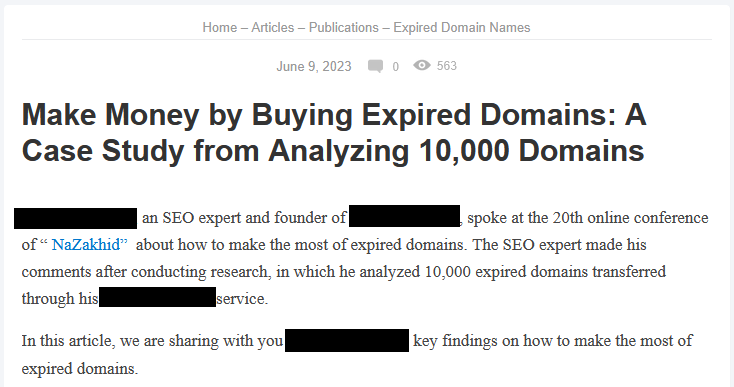 This piece is essentially a report on a presentation this person made to a tech conference, laying out how this company makes money from expired web domains. The translation was a little patchy, but the gist of it is summarised here: